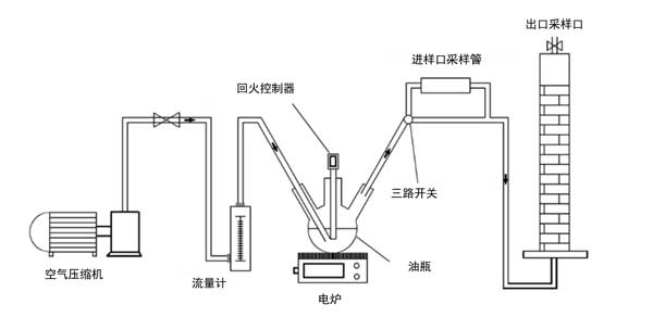如圖1所示,在裝滿5g顆粒活性炭的采樣管的入口和出口處收集3分鐘的模擬烹飪油煙樣品。采樣重復3次。取出樣品管中的顆粒活性炭,轉移到燒瓶中,并使用超聲儀用15mL四氯化碳洗滌5分鐘。收集清潔液并將其轉移到另一個燒瓶中(標記為A)。用10mL四氯化碳再次洗滌顆粒活性炭,并收集清潔液并將其轉移到燒瓶A中。