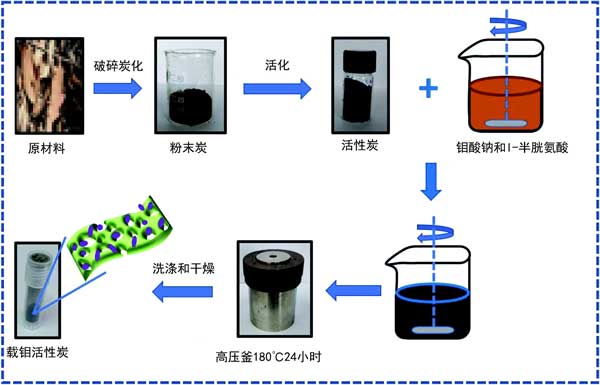 圖1:活性炭載二硫化鉬復合材料的制備示意圖。