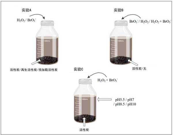 在飲用水處理過程中,使用臭氧和過氧化氫的高級氧化工藝可能會產生副產品、殘留的過氧化氫和溴酸鹽。由于這些副產物可能會對后續含水層系統的生態系統造成不良影響,因此在流入含水層系統之前需要將其處理至低濃度。本次主要是評估水中高級氧化工藝中殘留的過氧化氫和溴酸鹽副產物是否能用活性炭去除,并研究其背后的機制。
