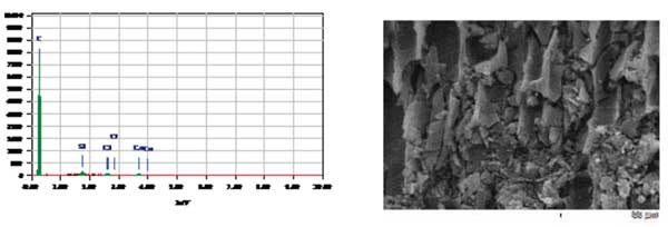 圖1:活性炭的礦物質含量降低,并且在活性炭表面有更大、更粗糙的孔隙。