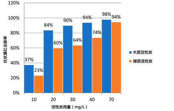 圖3:柱狀藻紅去除量與水基質中應用活性炭濃度的函數關系。