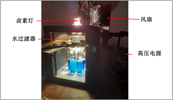 圖2:實驗裝置:使用白光光催化去除亞甲基藍。