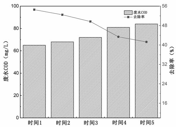 為了評估活性炭的可重復使用性,對活性炭進行了吸附-解吸實驗。經過四個吸附-解吸循環后,活性炭吸附對焦化廢水中COD的吸附效率僅降低了約10%(圖3),表明活性炭具有良好的可重復使用性。此外,使用NaOH作為再生劑的方法具有成本效益高的優點?傊,這些表明本研究中生產的活性炭在實際廢水處理中具有巨大的應用潛力。