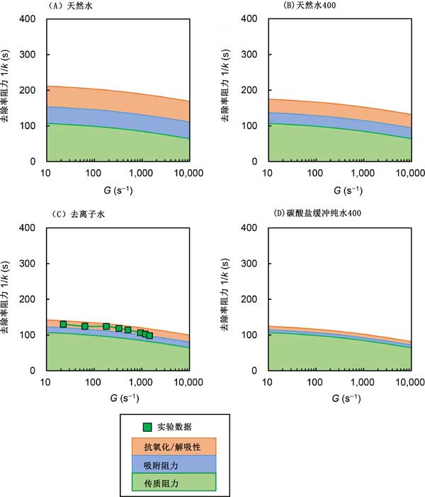 我們將去除速率阻力(1/k)與混合強度分解為三個阻力分量(即來自外膜傳質、吸附和氧化/解吸的速率阻力圖2)。高混合強度對二價錳去除率的影響在碳酸鹽緩沖純水中較大,但在天然水中較小,因為傳質阻力不是主要因素。這表明流速對流動反應器中錳去除的影響,因為G值(湍流混合)的影響強度隨流量變化的變化很小。