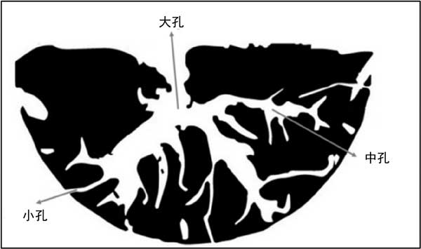 除了活性炭的結晶和化學構型外,其多孔結構在各種應用中也起著至關重要的作用。活性炭的吸收能力與表面積、孔體積和孔徑分布高度相關。它主要取決于原料的性質和化學處理。活性炭的多孔結構是在碳化過程中通過消除原材料中的非碳物質產生的,該原材料產生具有基本孔結構的固定碳塊,并在活化過程中進一步發展。活化過程擴大了碳化過程中產生的孔隙的直徑,同時產生了一些新的孔隙,從而形成了一個發達的多孔結構。活性炭中的孔隙分布在各種尺寸和形狀上。所得活性炭的孔徑分布主要受浸漬程度的影響。活化和碳化條件是影響所得活性炭孔隙率類型的最關鍵參數。活性炭對孔徑的分類如下:大孔(>50nm)、中孔(2–5nm)和微孔(<2nm)。微孔可以進一步細分為超微孔(<0.5nm)和超微孔(1-2nm)。中孔作為吸附物分子通過微孔網絡的通道。大孔沒有任何意義,但它們有助于引導金屬離子進入中孔和微孔表面。活性炭的特征孔徑分布如圖2所示。