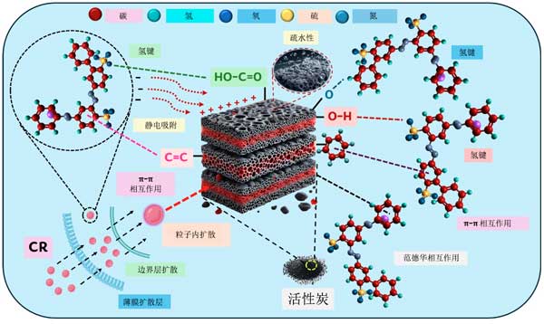 圖5:示意圖表示在吸附過(guò)程中SCAC和CR之間的關(guān)鍵相互作用。