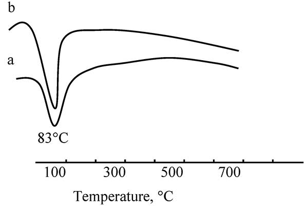 利用DTA技術研究了煅燒過程中催化劑的性質變化。圖1顯示了煅燒和干燥活性炭載體的DTA曲線。兩個樣品在83℃附近只有一個吸熱峰。該峰對吸附水的解吸有貢獻?紤]到活性炭是具有極高容量和高吸附速率的優異吸附劑的事實,甚至在樣品干燥或煅燒之后峰值出現也就不足為奇了。兩種樣品的DTA曲線沒有明顯差異,表明煅燒對載體的熱性質基本上沒有影響。