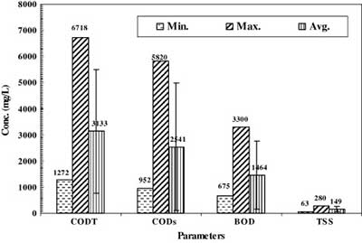 亞麻廢水的理化特性如圖1所示。結(jié)果表明,化學(xué)需氧量(COD)為127〜6718 mgO 2 / l,平均值為3133 mg / L。此外,BOD指示的平均可生物降解物質(zhì)為1464mg / L。平均BOD / COD比值為0.467,表明生物降解難度較大。此外,總懸浮物達到149 毫克/升。