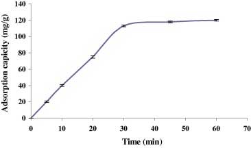 活性炭對廢水中有機物的吸附不僅受活性炭劑量的影響,還受到吸附劑在反應(yīng)混合物中的保留時間的影響。為了確定活性炭吸附過程的最佳保留時間,在最佳吸附劑(0.75 g / L)和幾個處理過的廢水樣品上進行了實驗。分析殘余的COD。所獲得的數(shù)據(jù)顯示在圖3中顯示了吸附能力(q)隨時間的變化。吸附能力隨著時間的推移而增加,并且COD水平隨著時間而降低。30 min 后COD的去除率為77%,q達到113 mg COD / g。因此,最佳保留時間選擇為30 分鐘。