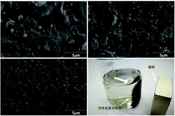圖2:活性炭,活性炭復合材料,Fe 3 O 4納米顆粒的SEM圖像與宏觀圖。