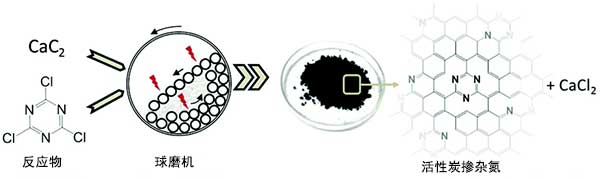 圖1:室溫下合成活性炭的機械化學反應的概念。