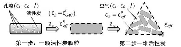 圖1:用于導出介電常數和活性炭孔隙體積之間關系的示意圖。