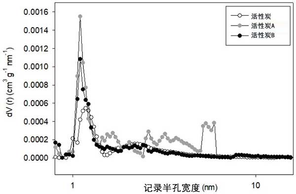 可以觀察到,由于在解吸分支中形成的小磁滯回線,活性炭普遍具有微孔性,這表明毛細孔凝結很小,因此中孔的量較少。通過QSDFT方法獲得這幾種活性炭的總體積和孔徑分布,假設孔為狹縫圓柱形。圖2顯示了三種研究的活性炭的孔徑分布,可以確認,對于所有活性炭樣品,主要存在于1.0-1.5nm區域的微孔,而對于活性炭A,也可以檢測到少量的中孔。