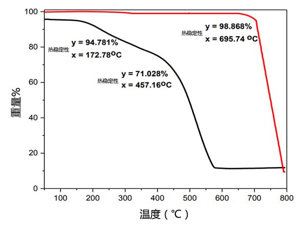 在改性之前和之后的活性炭的熱重分析使得能夠確定它們的熱穩定性以說明計算的最佳條件。該圖(圖3)表明,在與水分蒸發相關的第一區域中,原始和離子液體處理的活性炭的熱穩定性分別為71.03%和99.97%。即使在羥基降解后,離子液體處理的活性炭的熱穩定性也高于活性炭的熱穩定性。原始和氧化活性炭之間的重量損失差異可歸因于活性炭上羧基取代導致的親水性變化。在由于碳分解而發生快速重量損失的第二階段中,原始和離子液體處理的活性炭的熱穩定性為11.32%和98.86%。第三次重量損失與化學結構在795℃左右的分解有關,其中原始和離子液體處理的活性炭顯示11.85%和9.44%的穩定性。原始活性炭中的剩余材料很可能是在其他氧化處理中去除的催化劑,并且改善了表面改性活性炭的總純度。結論,改性活性炭樣品表現出高得多的熱分解溫度,這表明吸附劑的熱穩定組合。熱穩定性的這種增加可能是由于增加的分子間相互作用和1-己基-3-甲基咪唑三氟磺酰亞胺的配位性質。