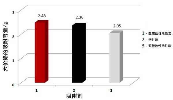 圖1.:活性炭的類(lèi)型對(duì)六價(jià)鉻吸附容量的影響。