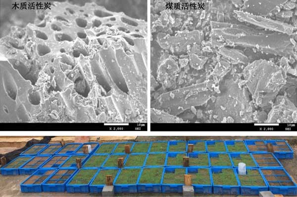 圖1:兩種活性炭的SEM圖像和實驗中的播種機安排。
