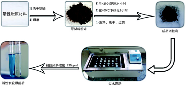 圖1:活性炭制作與吸附流程。